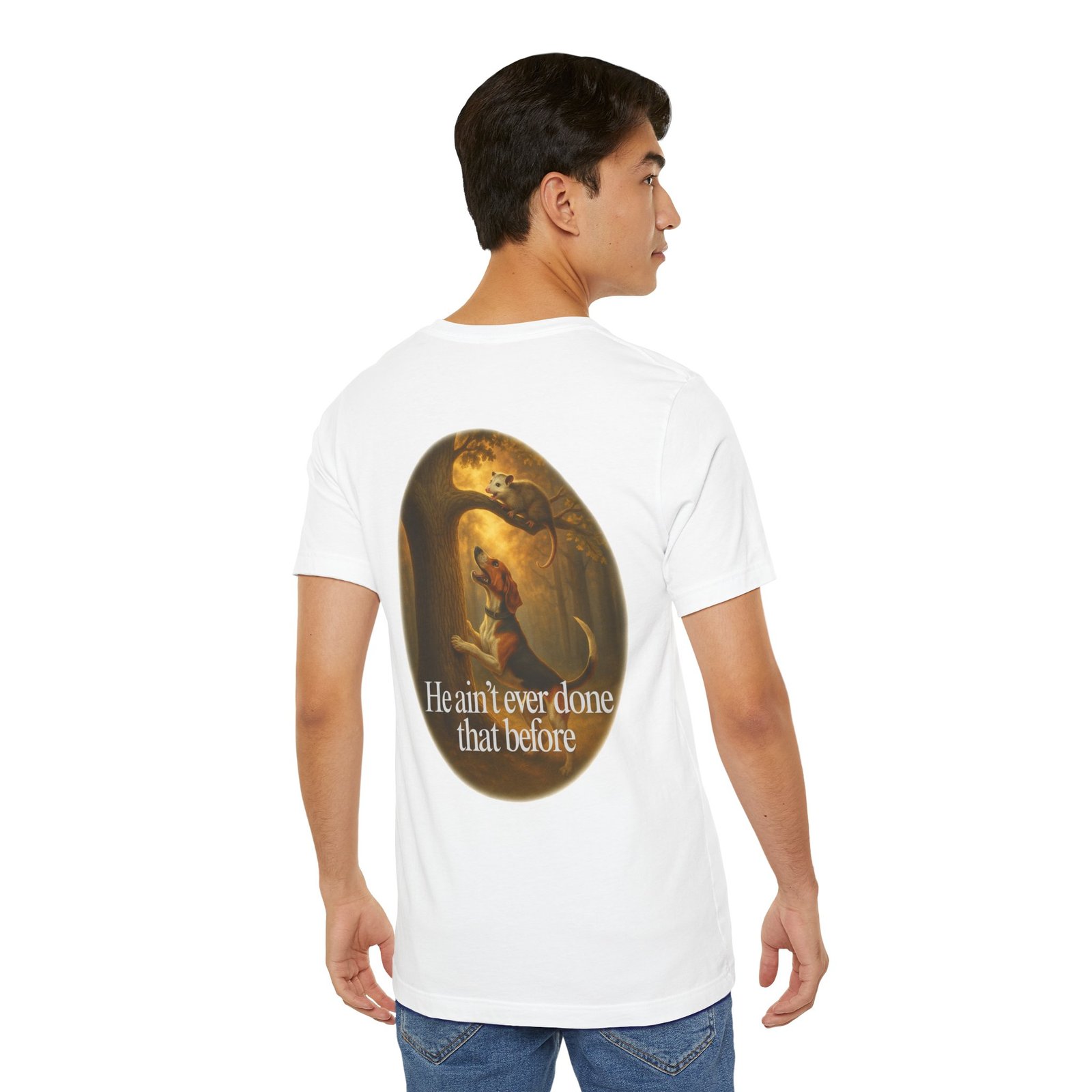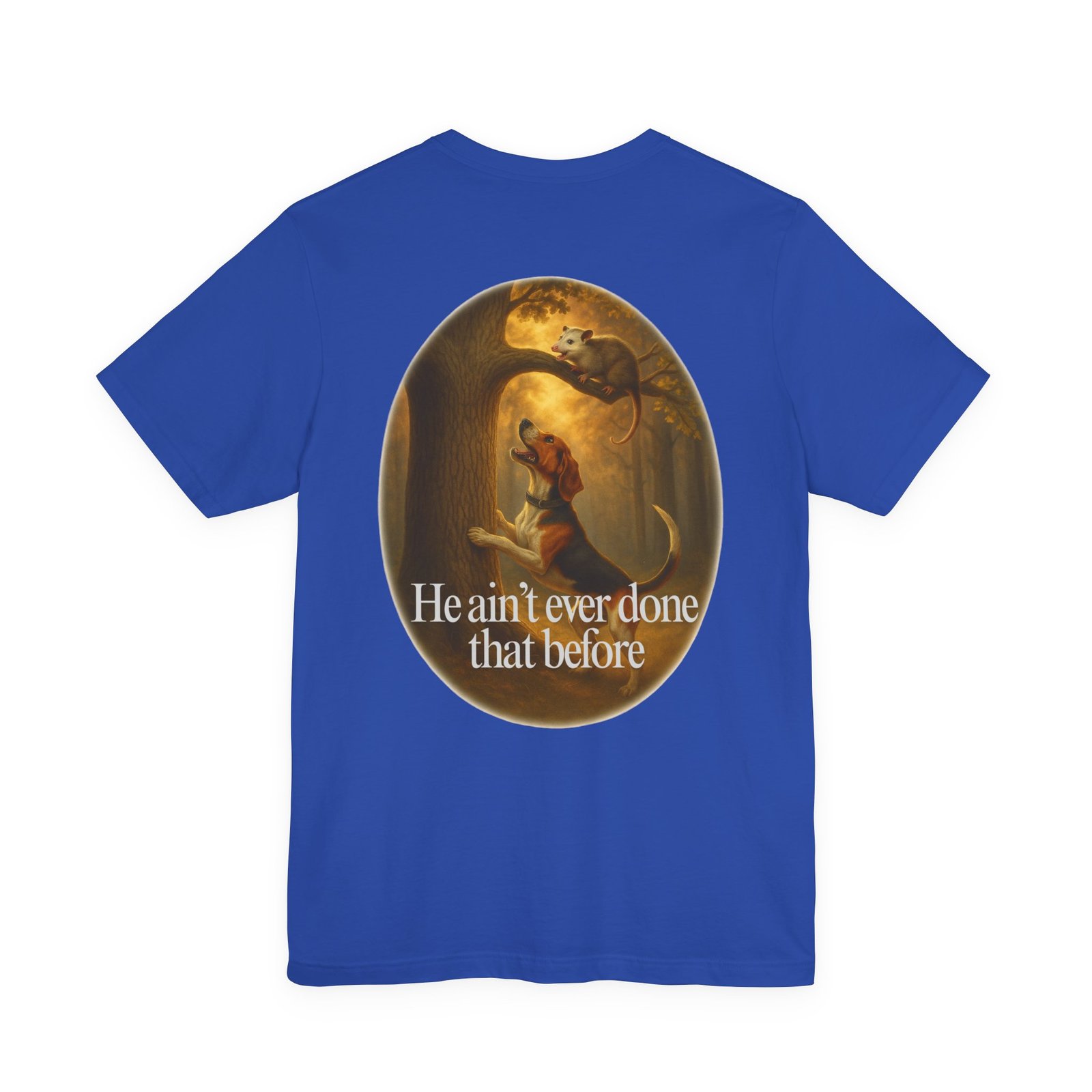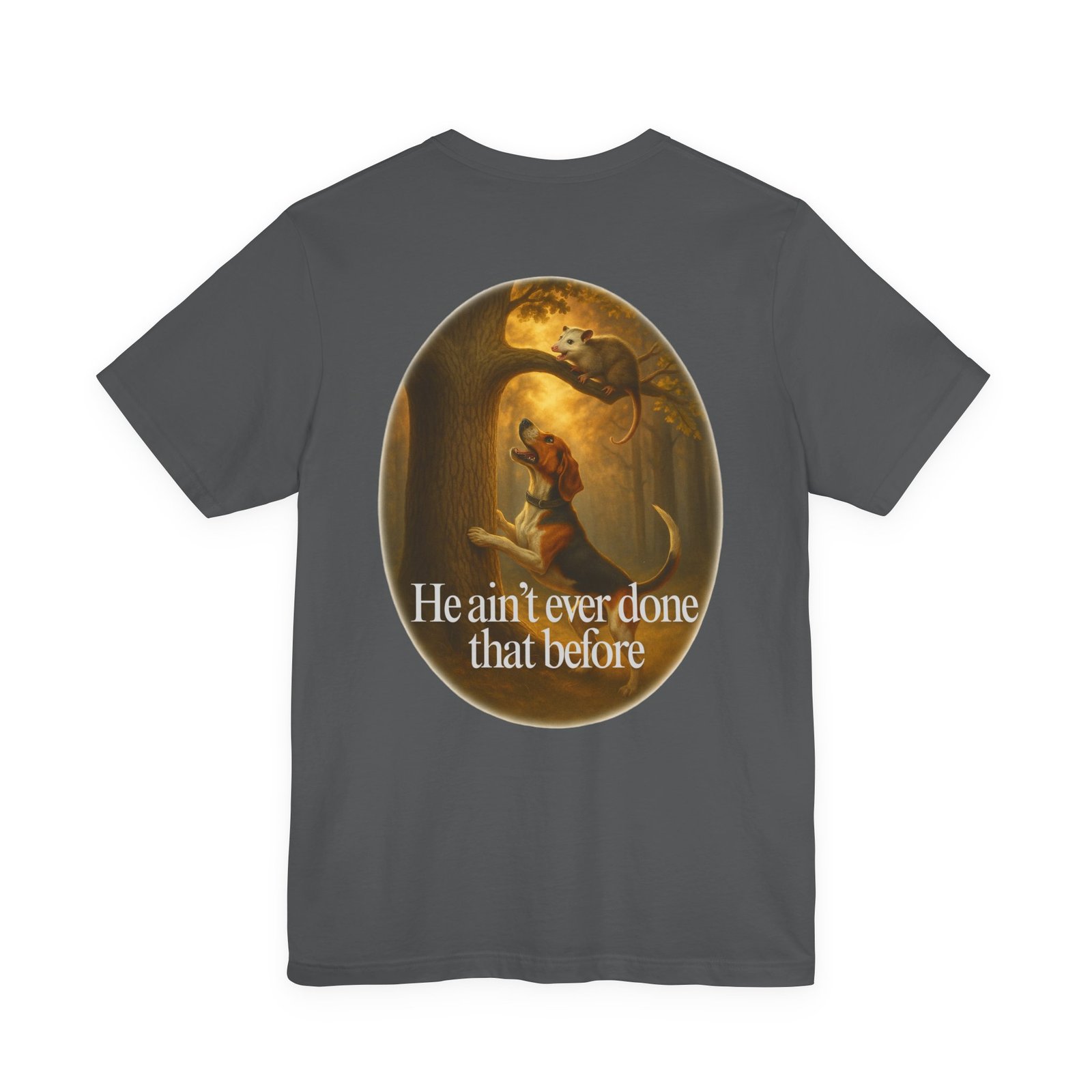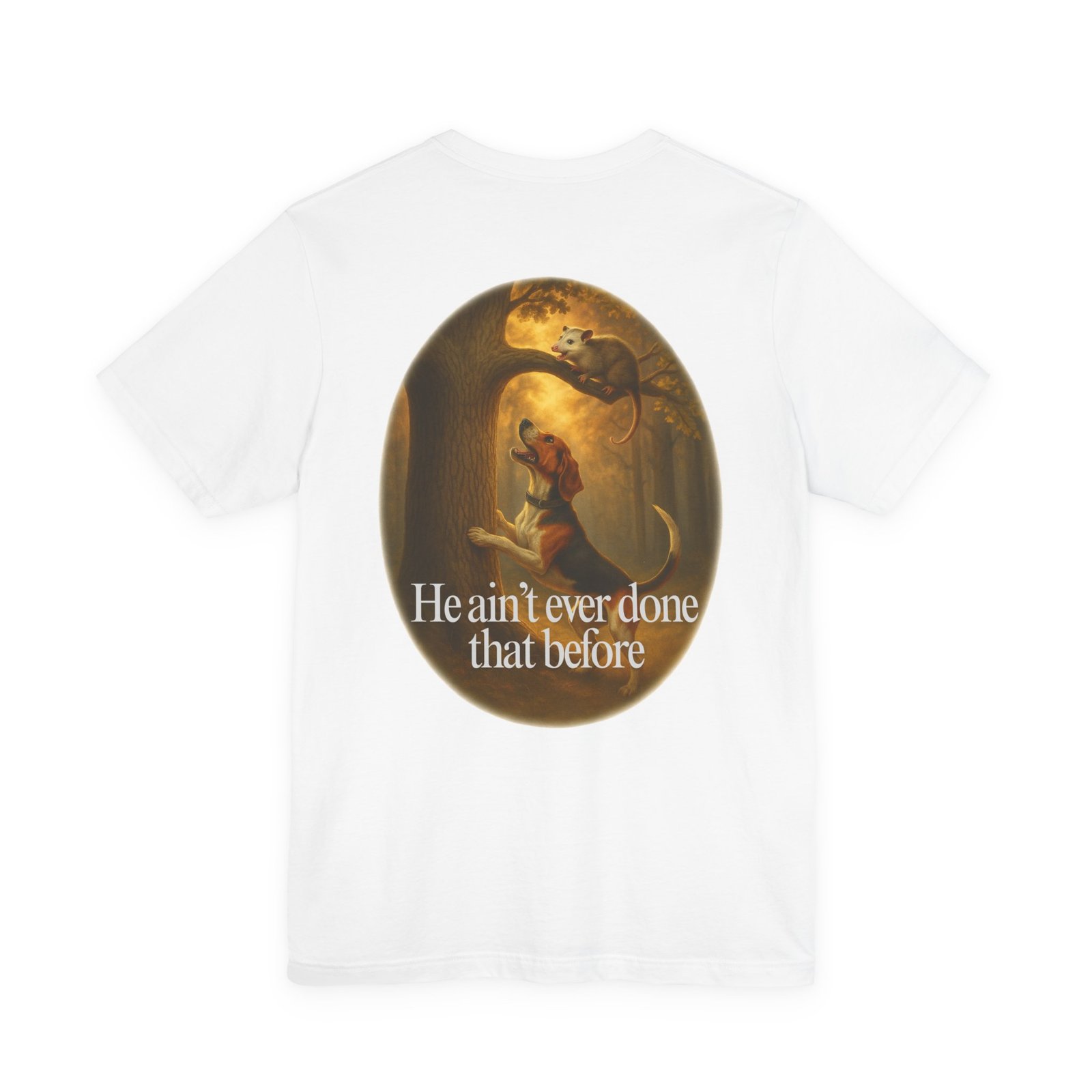 Every houndsman has heard it—or said it—“He Ain’t Ever Done That Before.” This tee captures the humor and tradition of competition hunting and long nights in the woods. Printed on the premium Bella+Canvas 3001 Unisex Tee, it offers unbeatable softness, lightweight comfort, and lasting durability, making it perfect for hunts, club events, or casual wear.