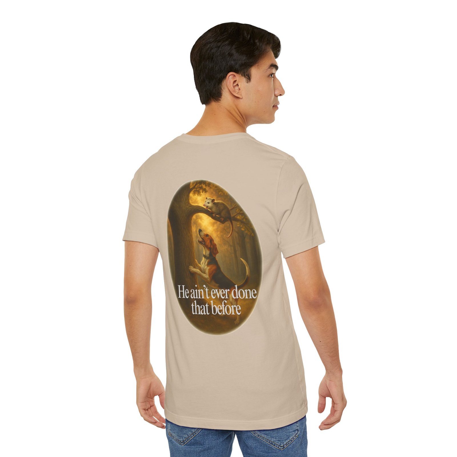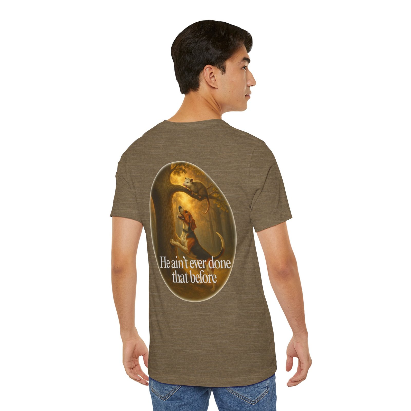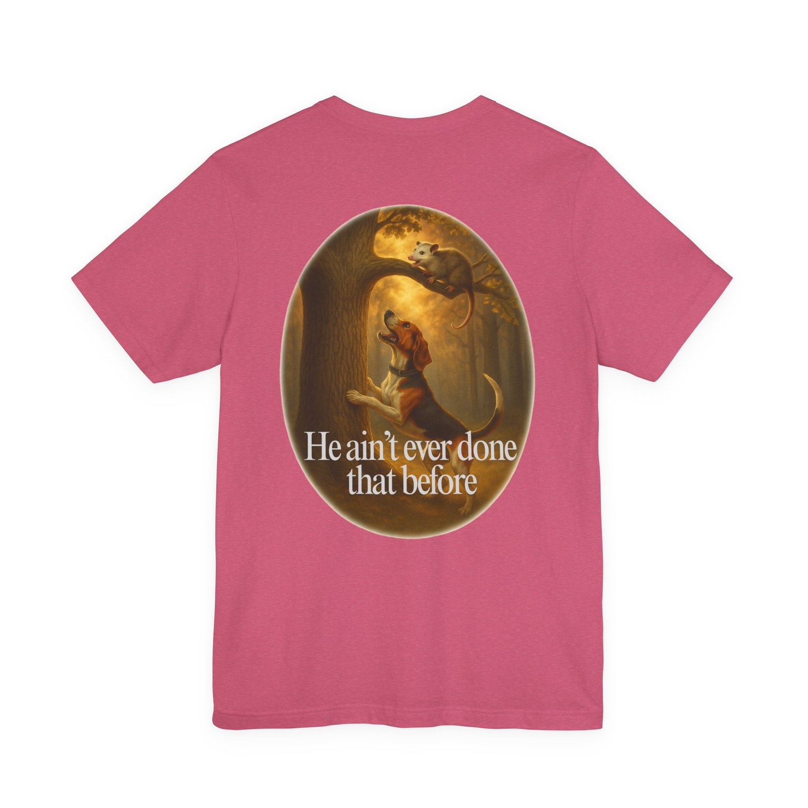 Every houndsman has heard it—or said it—“He Ain’t Ever Done That Before.” This tee captures the humor and tradition of competition hunting and long nights in the woods. Printed on the premium Bella+Canvas 3001 Unisex Tee, it offers unbeatable softness, lightweight comfort, and lasting durability, making it perfect for hunts, club events, or casual wear.