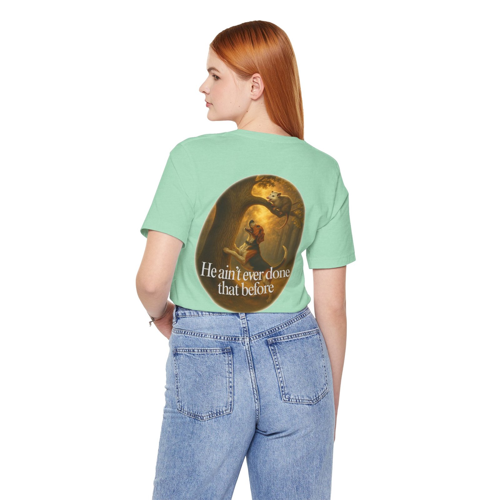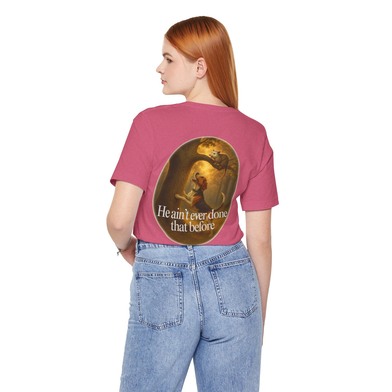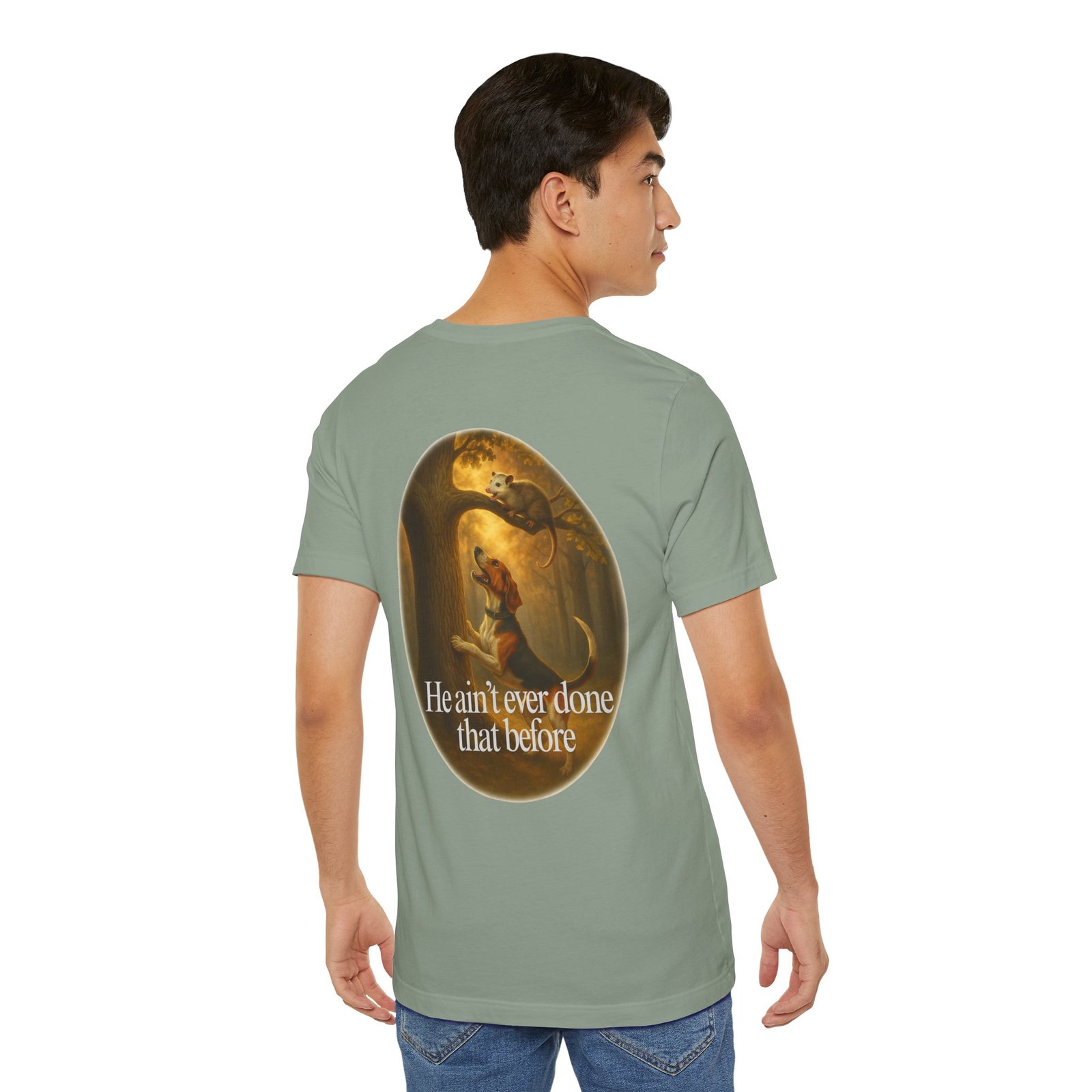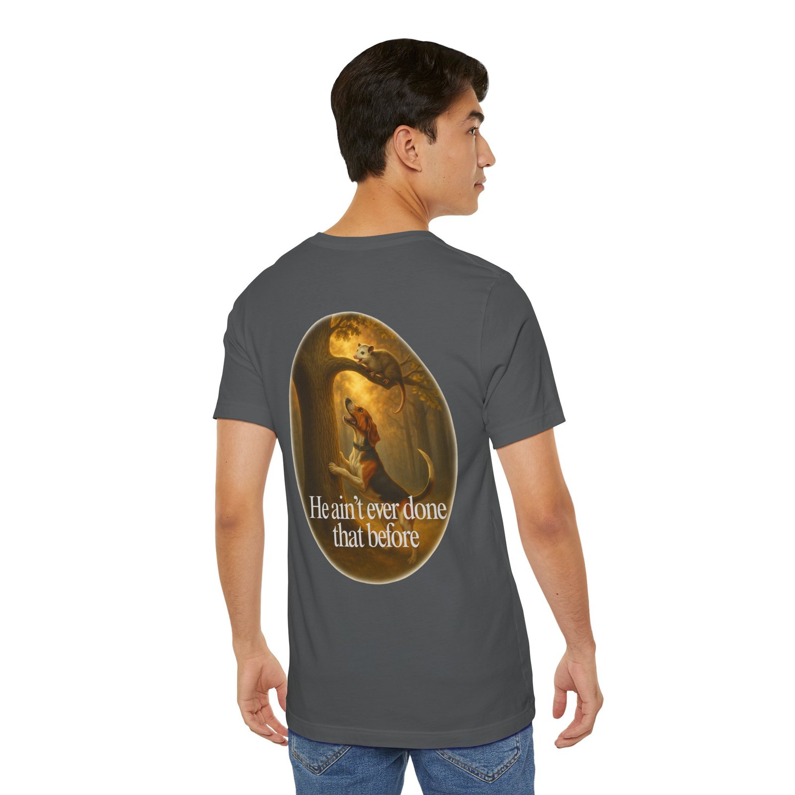 Every houndsman has heard it—or said it—“He Ain’t Ever Done That Before.” This tee captures the humor and tradition of competition hunting and long nights in the woods. Printed on the premium Bella+Canvas 3001 Unisex Tee, it offers unbeatable softness, lightweight comfort, and lasting durability, making it perfect for hunts, club events, or casual wear.