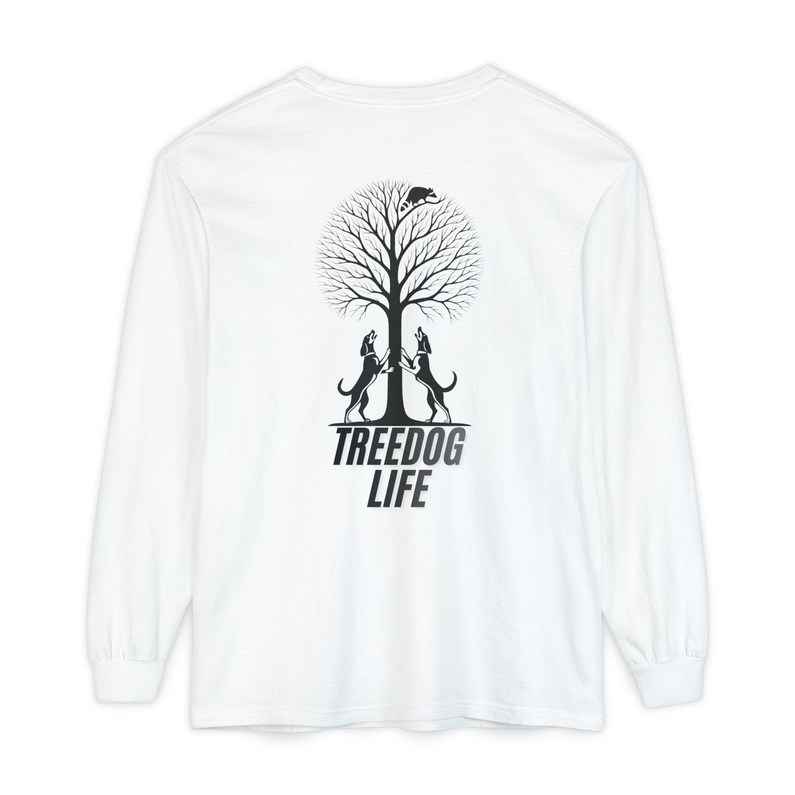 From early kennel mornings to late-night trees, this long sleeve lets everyone know—you live the treedog life.